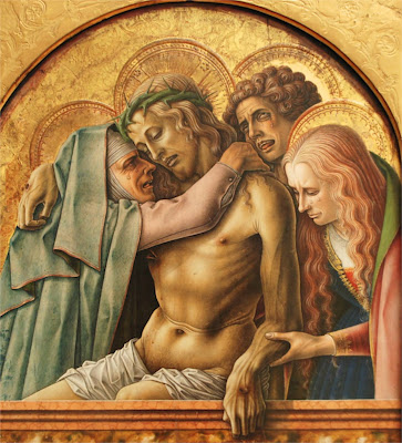 So the drawing I speak of is in this Crivelli below. Seems the exaggerated expression comes from Giotto maybe.